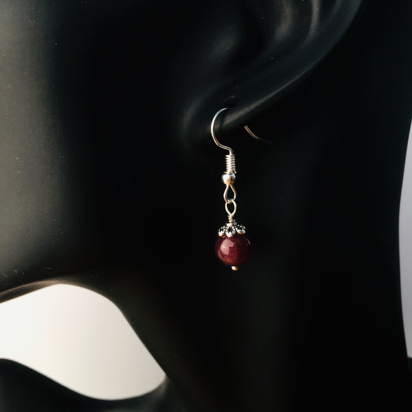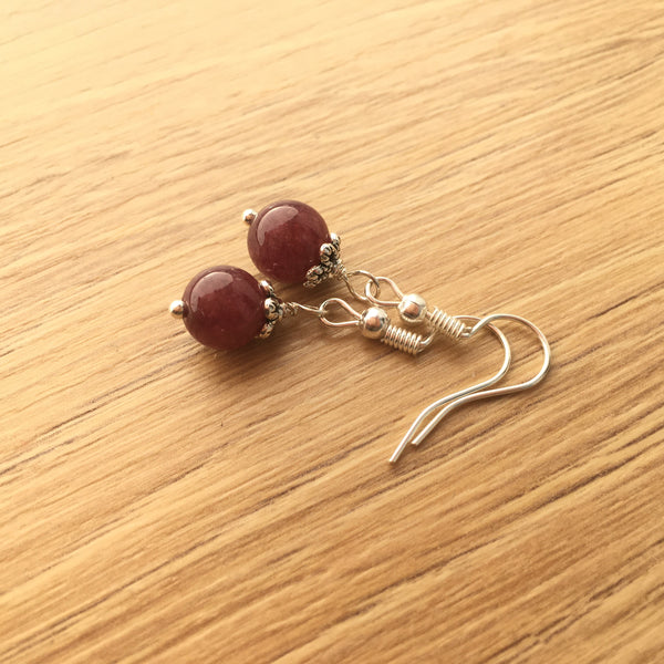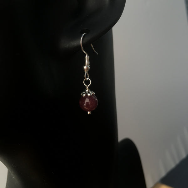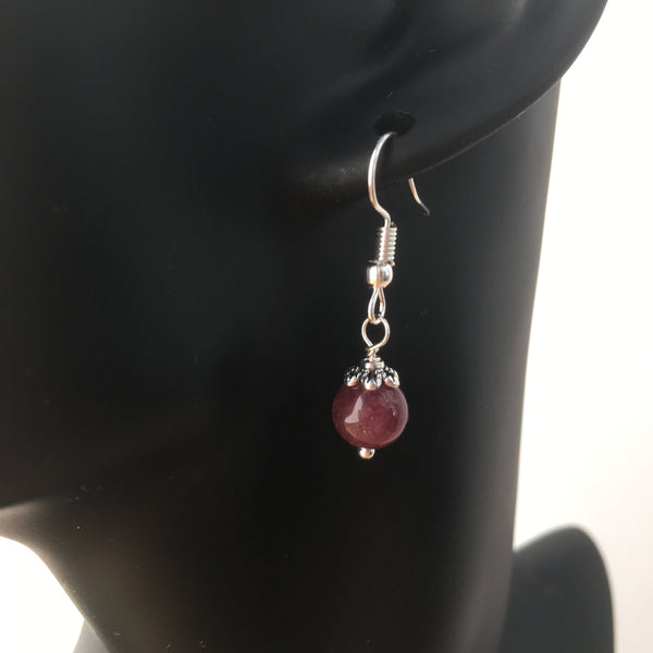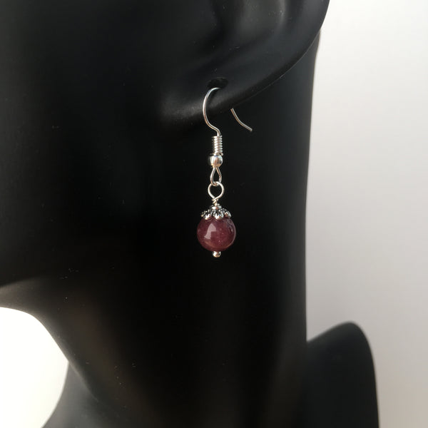 Genuine Lepidolite gemstone earrings with silver plated bead caps and findings.