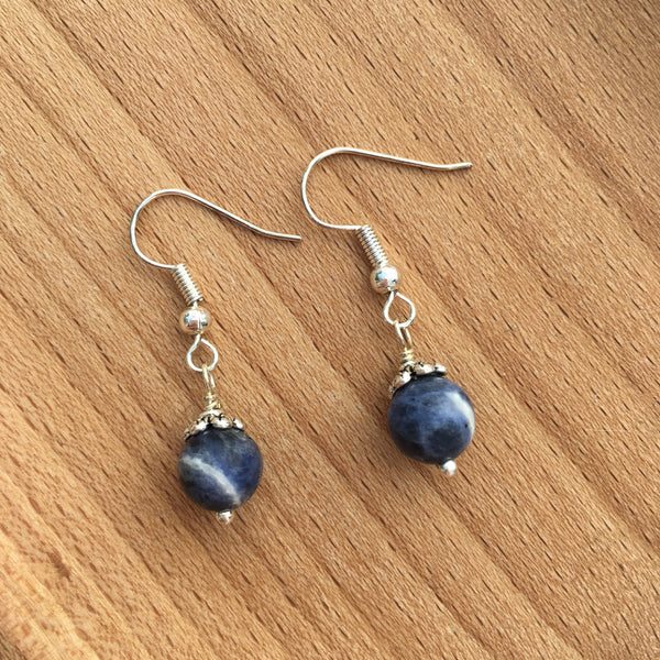 ☆ Earrings Detail ☆♡ Silver Plated Bead Caps & Findings♡ 8mm Natural Sodalite Beads, wire wrapped♡ Length - 3cm