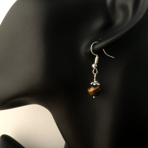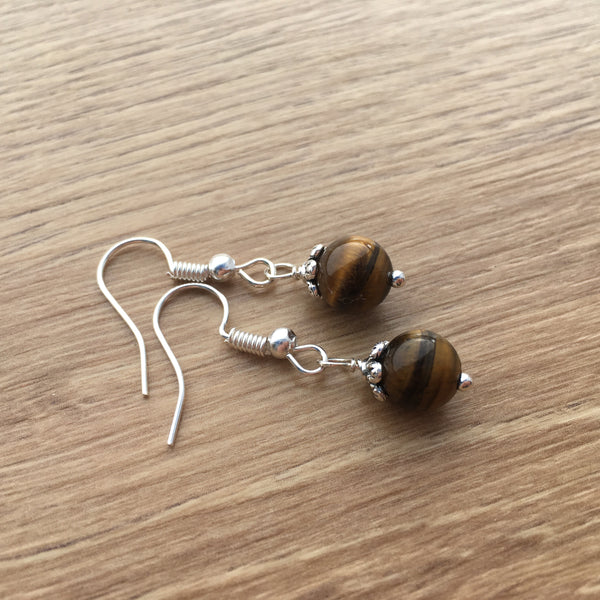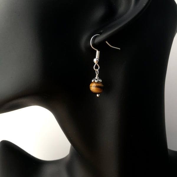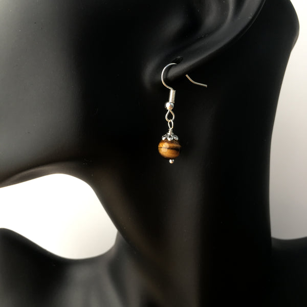 Genuine Tiger's Eye gemstone earrings with silver plated bead caps and findings.