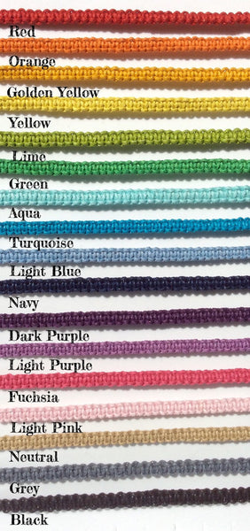 Handmade in the UK. 100% cotton cord with lead free, nickel free, silver plated charm.